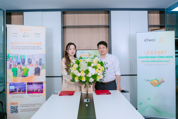 Ngày 14/04/2026 tại Hà Nội, Công ty Cổ phần iCheck chính thức ký kết hợp tác chuyển giao công nghệ cùng Công ty TNHH XNK RUTOP Vietnam – đơn vị uy tín trong lĩnh vực nhập khẩu và phân phối mỹ phẩm, dược mỹ phẩm quốc tế như Teana, Bielenda, Compliment, Velvet, Eveline Cosmetics tại thị trường Việt Nam.
