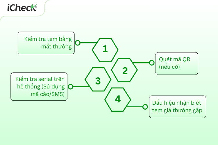 Để đảm bảo mua được sản phẩm chính hãng, bạn nên thực hiện quy trình kiểm tra tem chống hàng giả theo 4 bước cơ bản sau: